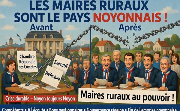 La présidence du Pays Noyonnais doit revenir à un maire rural! Le passé et le passif de cette instance communautaire nous l'imposent. Mobilisons nos élus et la population pour sortir de la crise qui n'a que trop duré! Faisons entendre la voix de la raison et portons-la au plus haut! Cliquez ici pour lire l'article.