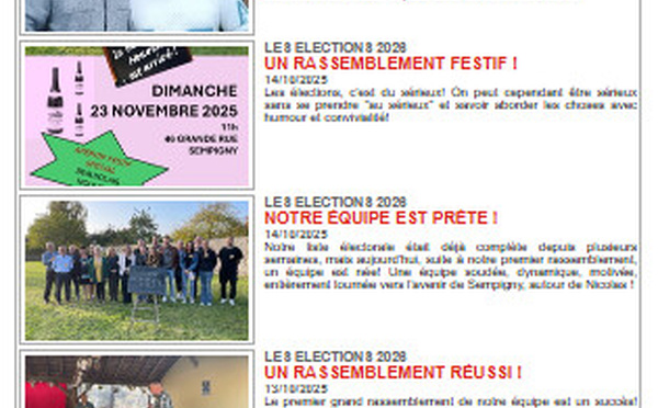 Nicolas a mis en place une boucle WhatsApp qui regroupe tous les colistiers et membres du comité de soutien, afin d'échanger rapidement et collectivement. Ce nouvel outil complète ceux déjà existants; le site Internet, Messenger, la page Facebook et la boîte mail ( lavenirdesempigny@gmail.com) !