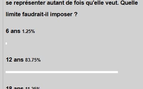 Notre sondage en ligne concernant la durée du mandat d'un élu municipal a redu son verdict! Plus de 80% des participants ont répondu " 12 ans", soit 2 mandats.