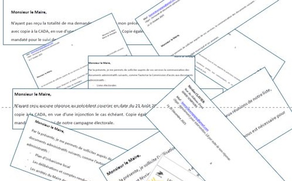 La loi nous autorise l'accès aux documents administratifs municipaux. Ceux-ci nous sont indispensables pour préparer l'après élection. Difficile pourtant de les obtenir! Étonnant, non ?