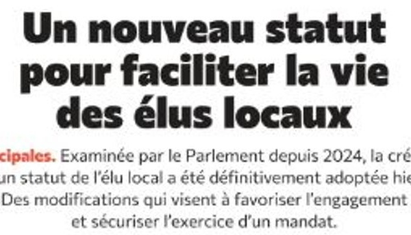Le statut de l'élu local a été modifié. Il a pour but de faciliter l'exercice du mandat électif local et donc de favoriser l'engagement pour une mission de service public.