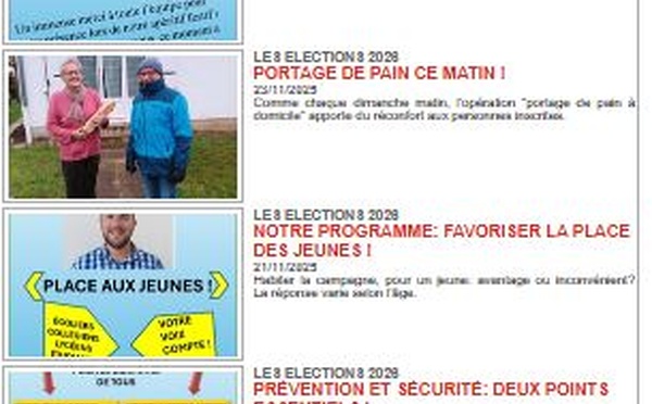 Notre portage de pain à domicile est un réussite totale. L'expérience menée à petite échelle ravit les bénéficiaires et sera bien sûr étendue très largement une fois notre élection acquise.